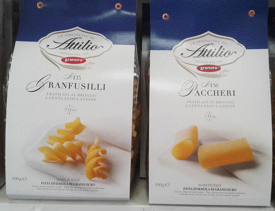 Nonostante la trafilatura sia al bronzo, il colore dei Formati Speciali di Attilio è dorato sia da crudi che dopo cotti. La cottura, al contrario di quanto accade con altre paste trafilate a bronzo, ne esalta ancor più il colore e le Specialità di Attilio appaiono nel piatto brillanti e dorate. I formati delle Specialità di Attilio sono tutti di grandi dimensioni, indicati per una cucina sofisticata con sughi a base di carne.